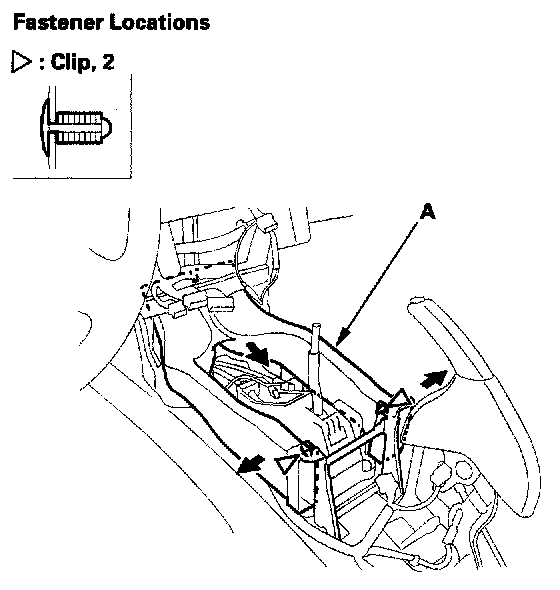 4. Detach the clips, then remove the rear vent duct (A).