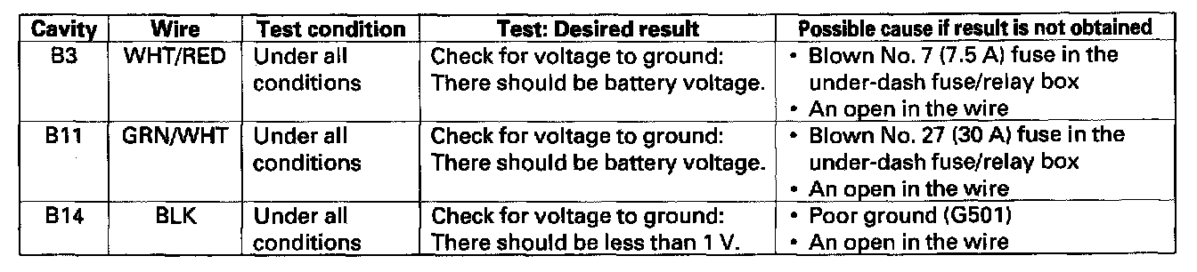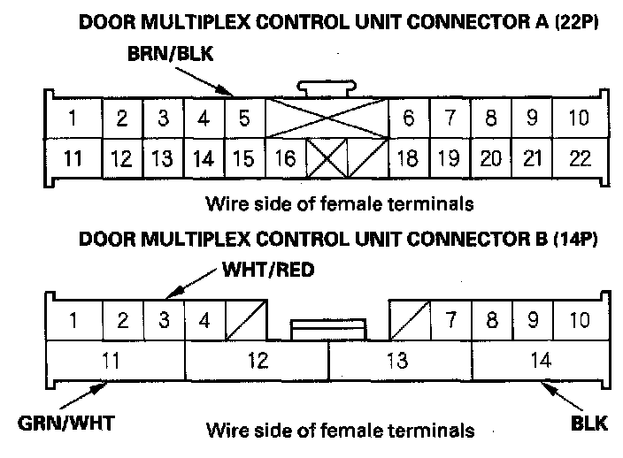 5. Disconnect the connector from the door multiplex control unit, and make these input tests at the connector.