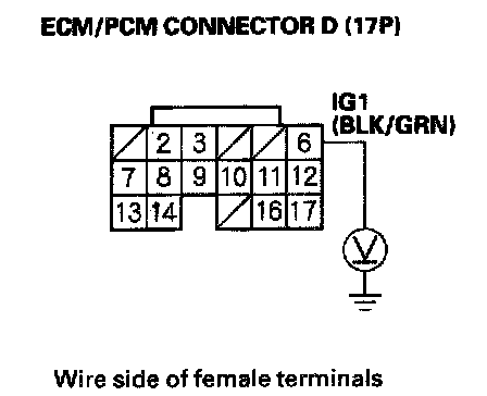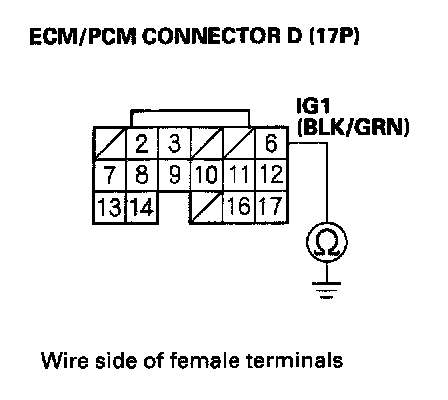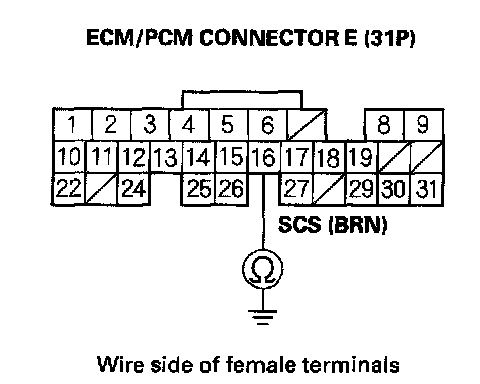 16. Check for continuity between ECM/PCM connector terminal E16 and body ground.