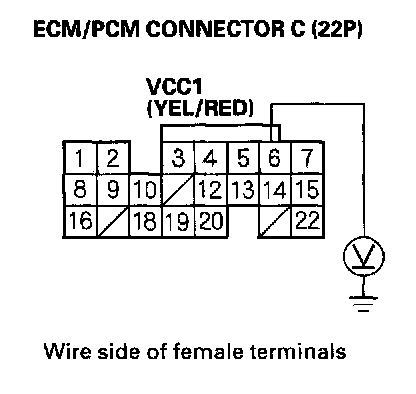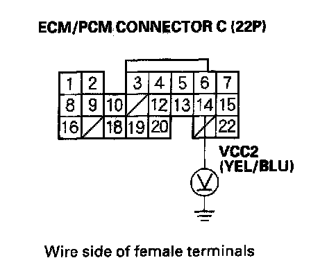 73. Disconnect the connector from each of these parts, one at a time, and measure voltage between ECM/PCM connector terminal C14 and body ground with the ignition switch ON (II).