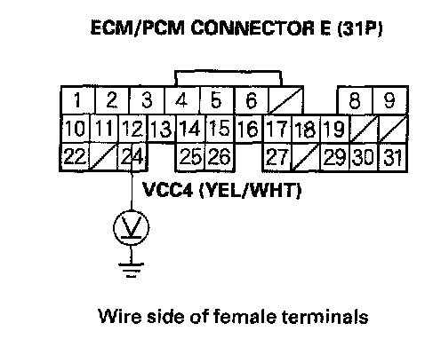 86. Measure voltage between ECM/PCM connector terminal E12 and body ground.