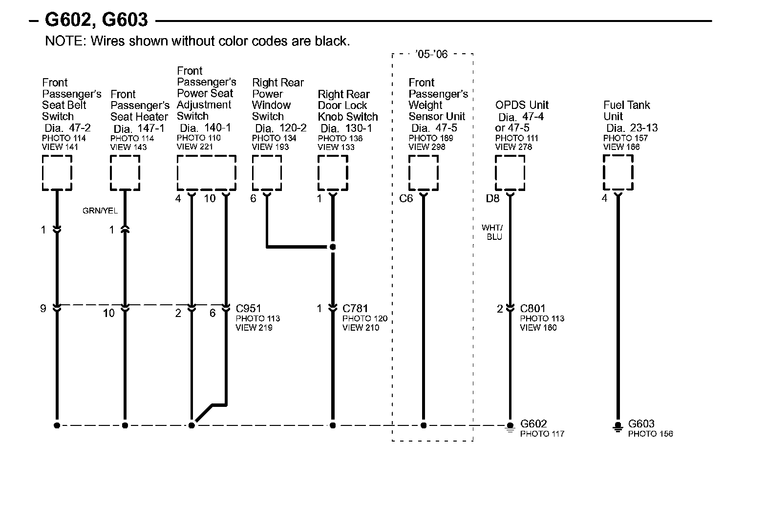 Connector Views: Connector terminal views (references to VIEWS) referred to within these diagrams can be found at Connector Views by View Number. Connector Views By View Number