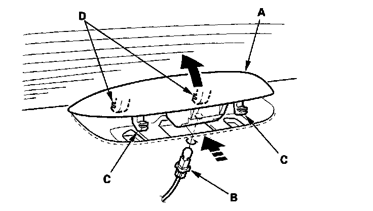 3. Release the rear hooks (D), then remove the high-mount brake light.
