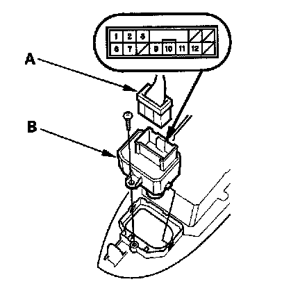 2. Disconnect the 13P connector (A) from the power mirror switch (B).