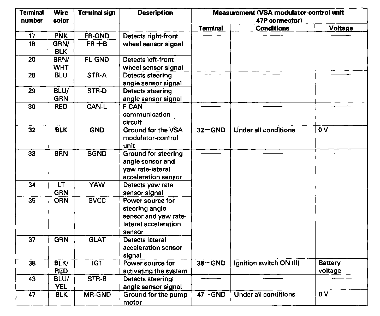VSA Modulator-control Unit Inputs and Outputs for 47P Connector: