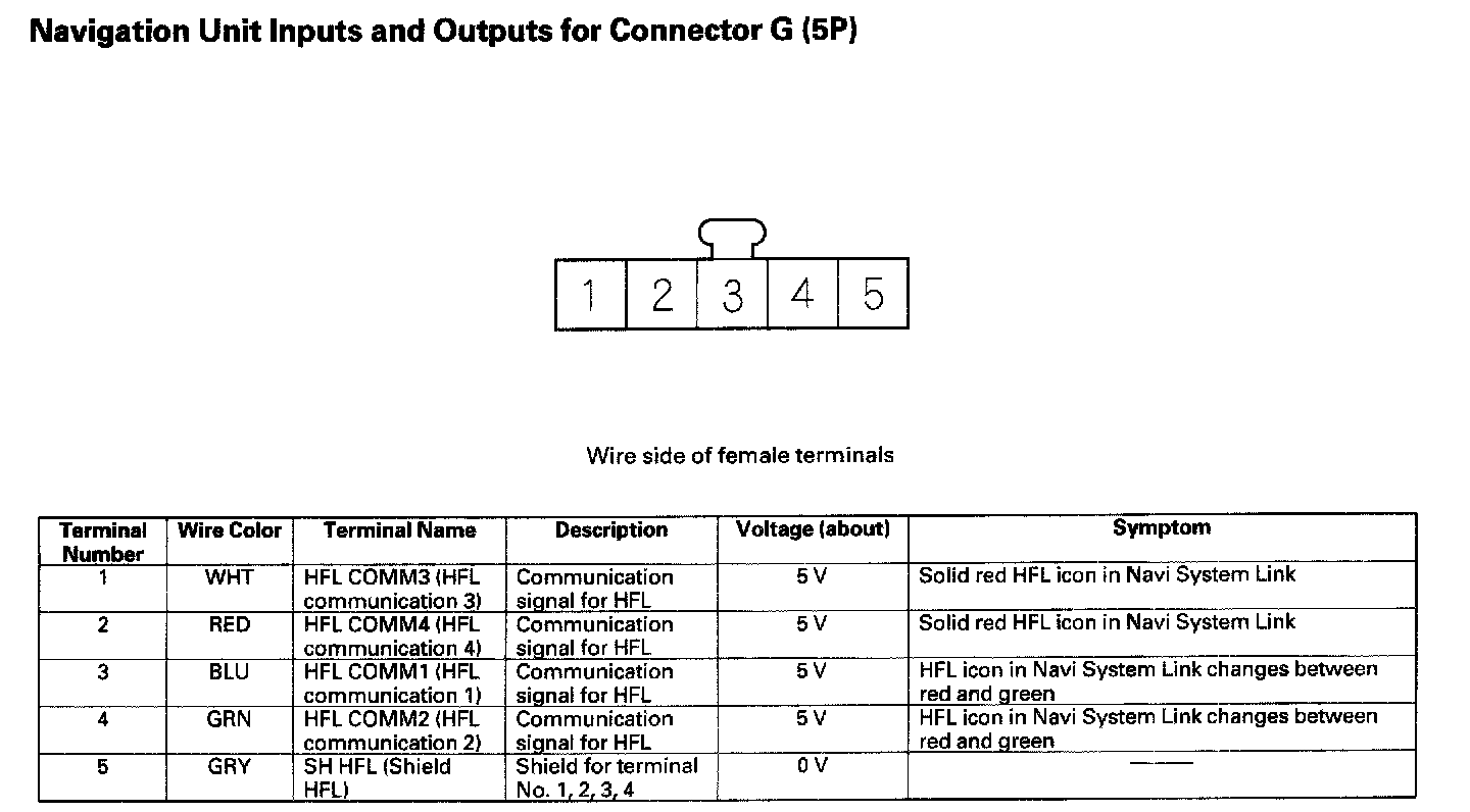 Navigation Unit Inputs And Outputs For Connector G(5P):