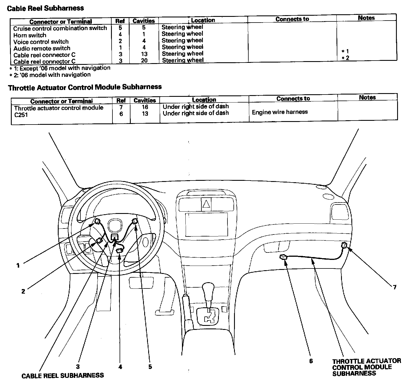 Cable Reel Subharness/Throttle Actuator Control Module Subharness: