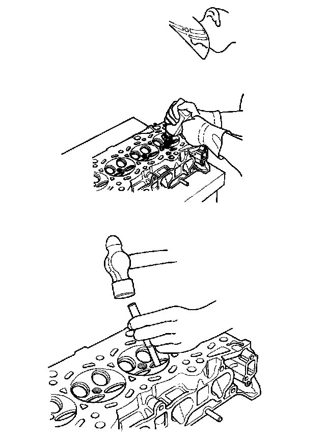 6. Turn the head over, and drive the guide out toward the camshaft side of the head.