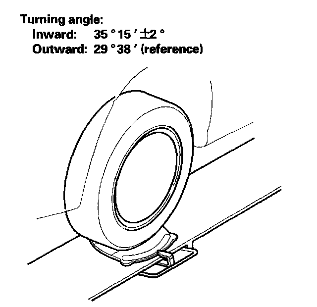 1. Turn the wheel right and left while applying the brake, and measure the turning angle of both wheels.