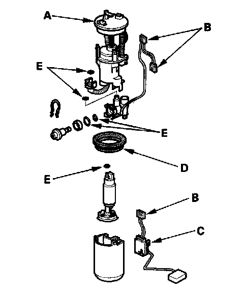 - When installing the fuel gauge sending unit (C), make sure the connection is secure and the connector is firmly locked into place. Be careful not to bend or twist it excessively.