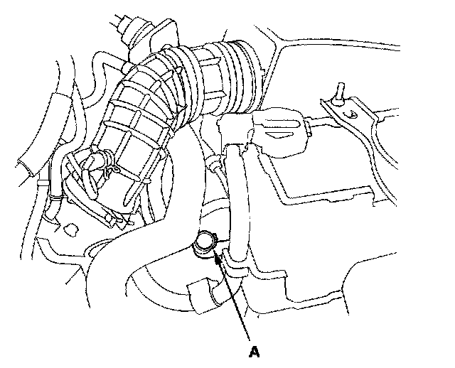 7. Pour the recommended fluid into the opening (A) of the dipstick guide pipe to bring it to upper mark. Always use Acura ATF DW-1 (ATF Z1 has been replaced by ATF DW-1, Honda Service News Nov 2010) automatic transmission fluid (ATF). Using a non-Acura ATF can affect shift quality.