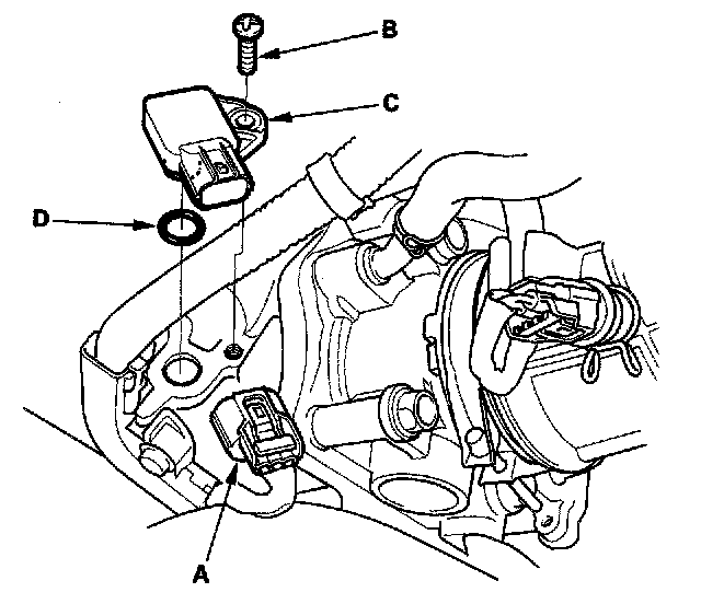 4. Install the sensor in the reverse order of removal with a new O-ring (D).