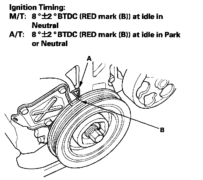 Ignition Timing Inspection1. Connect the Honda Diagnostic System (HDS) to the data link connector (DLC), and check for DTCs. If a DTC is present, diagnose and repair the cause before inspecting the ignition timing.