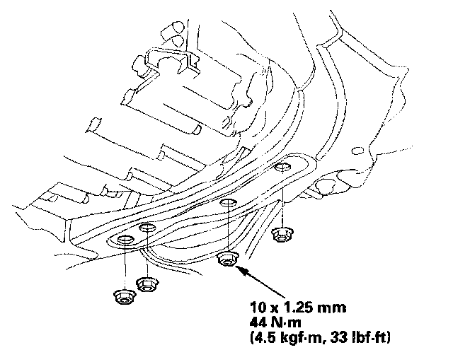 8. Place the transmission jack under the transmission, and remove the transmission lower mount nuts.
