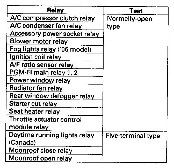Use this chart to identify the type of relay, then do the test listed for it.