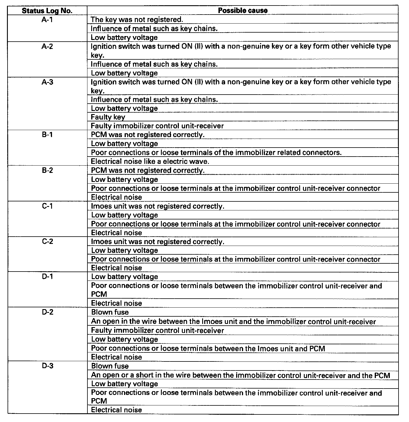 If the symptom does not occur again during the System Check, check the Status Log with the HDS, and troubleshoot the items by the Status Log table shown.