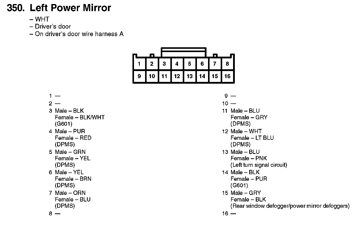 350. Left Power Mirror: