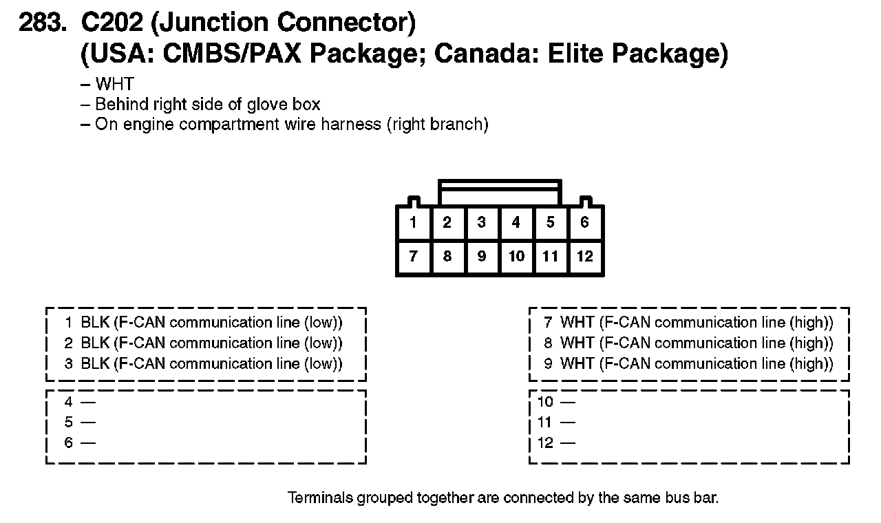 283. C202 (Junction Connector) (USA: CMBS/PAX Package; Canada: Elite Package):