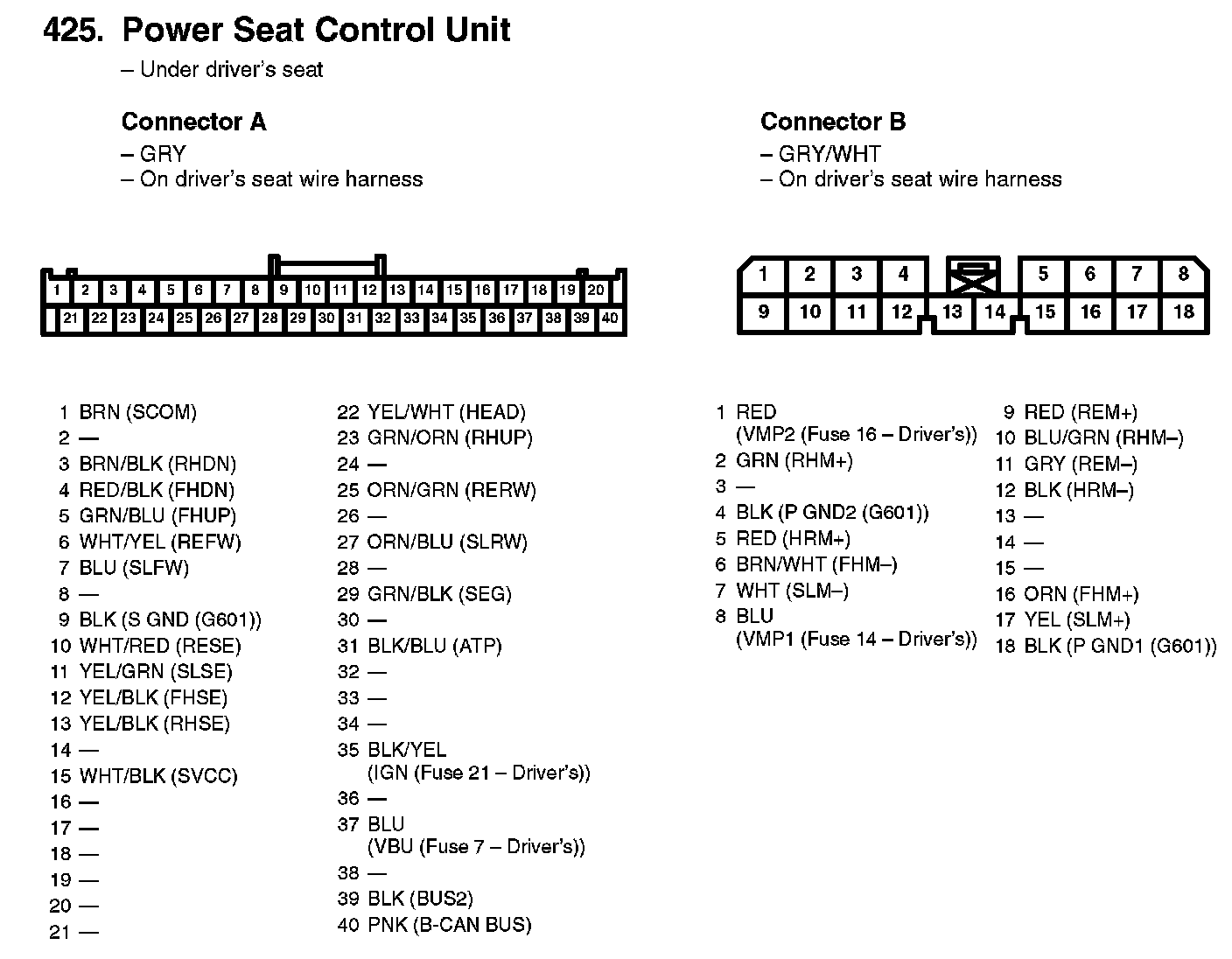 425. Power Seat Control Unit: