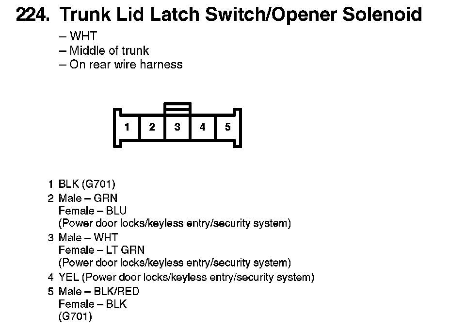 224. Trunk Lid Latch Switch/Opener Solenoid: