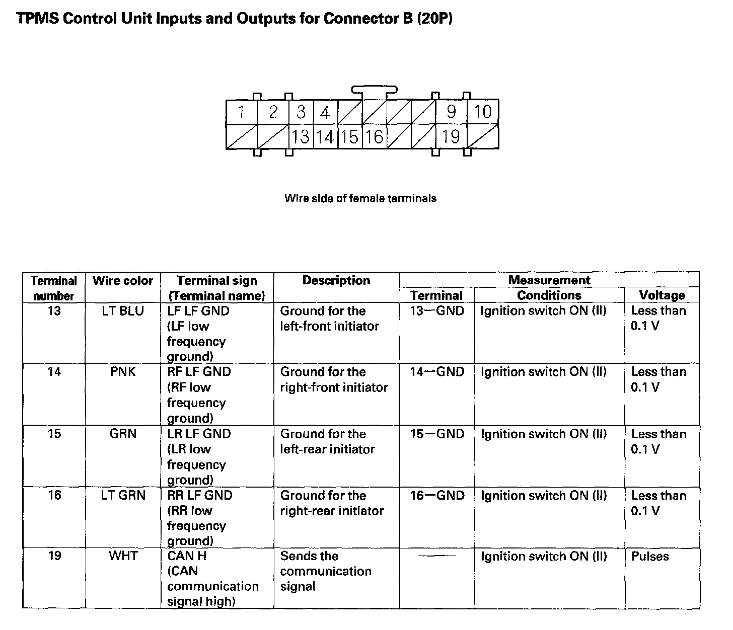 TPMS Control Unit Inputs And Outputs For Connector B (20P) (Part 2):