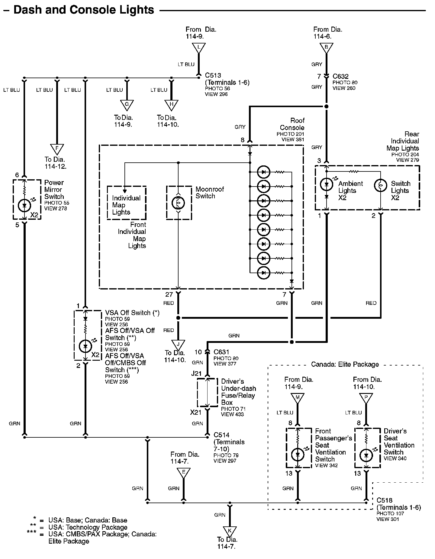 Connector Views: Connector terminal views (references to VIEWS) referred to within these diagrams can be found at Connector Views by View Number. Connector Views By View Number