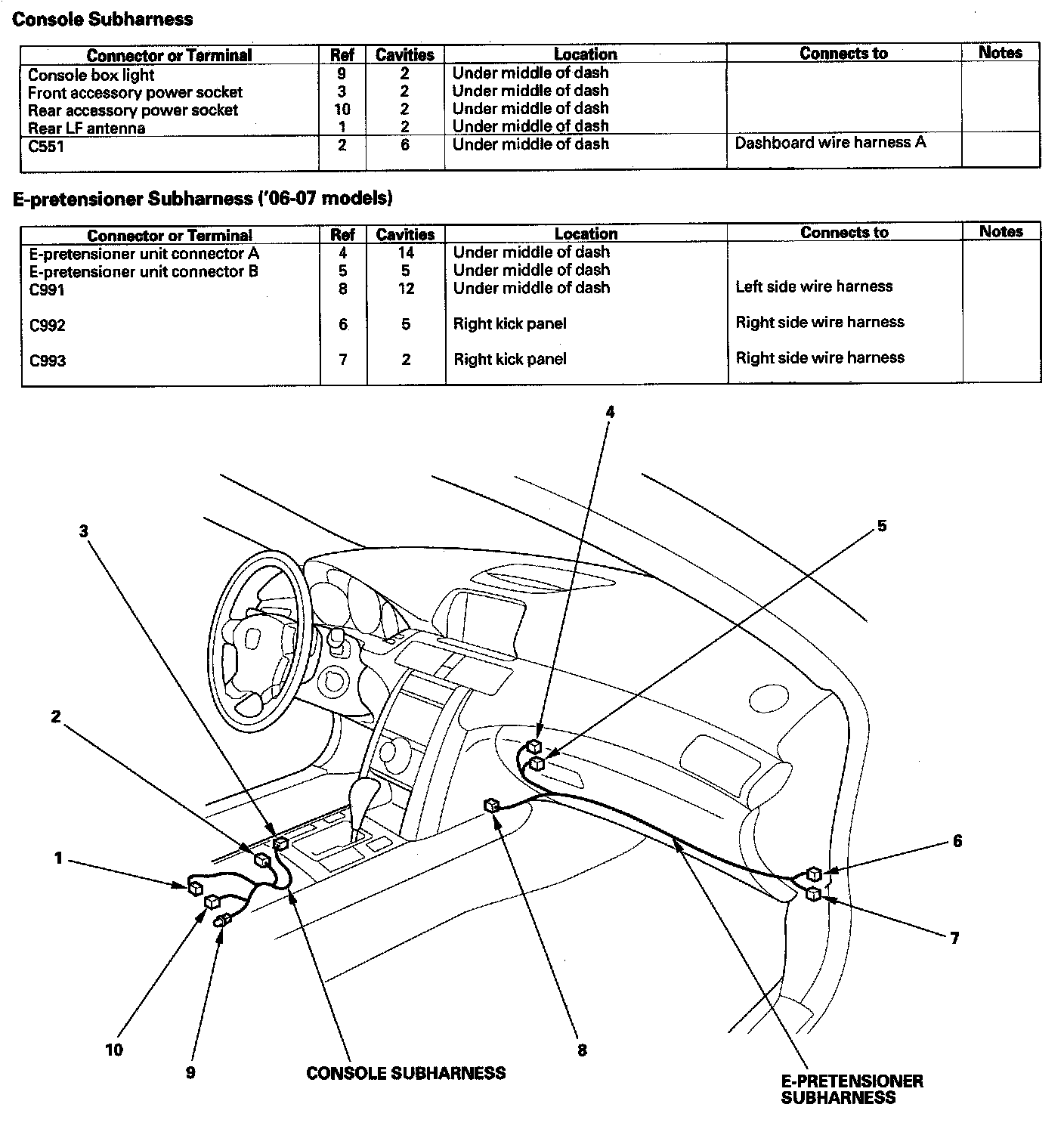 Console Subharness/E-pretensioner Subharness: