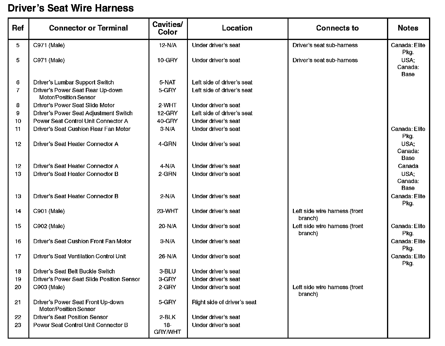 Driver's Seat Wire Harness: