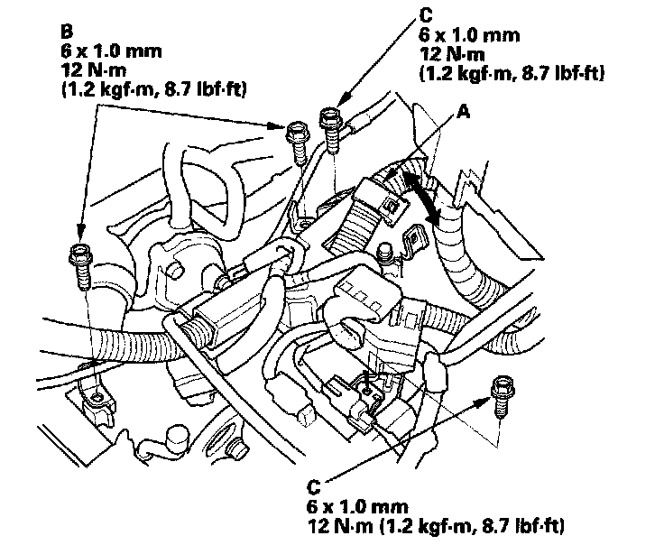 24. Install the two bolts (C) securing harness holder,