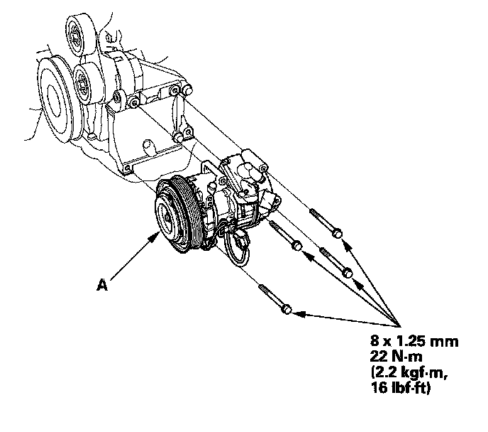 9. Install the A/C compressor in the reverse order of removal, and note these items:
