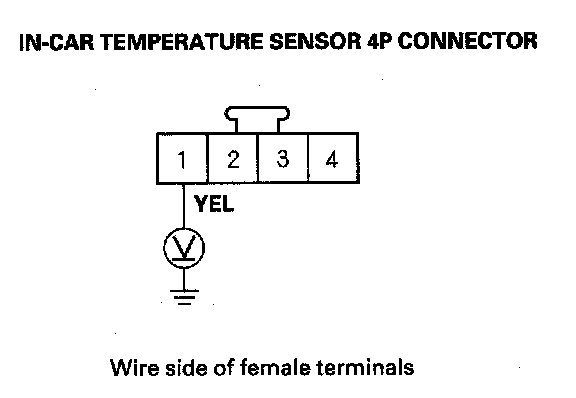4. Measure the voltage between the in-car temperature sensor 4P connector terminal No. 1 and the body ground.