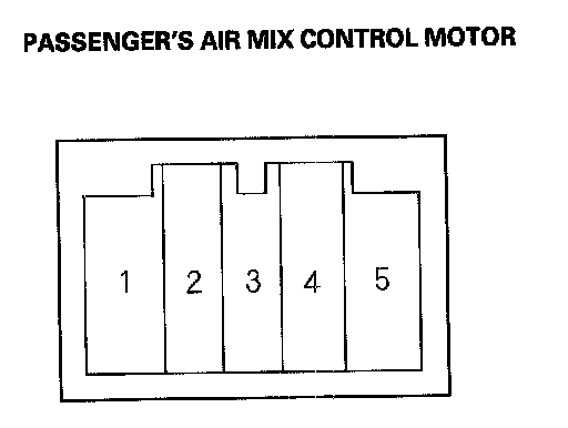 2. Connect battery power to the No. 1 terminal of the passenger's air mix control motor, and ground the No. 2 terminal; the passenger's air mix control motor should run, and stop at Max Hot. If it doesn't, reverse the connections; the passenger's air mix control motor should run, and stop at Max Cool.