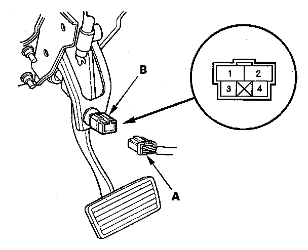Brake Pedal Position Switch Test1. Disconnect the 4P connector (A) from the brake pedal position switch (B).