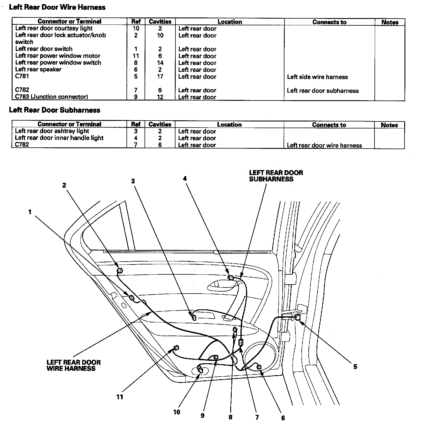 Left Rear Door Wire Harness/Left Rear Door Sub-harness: