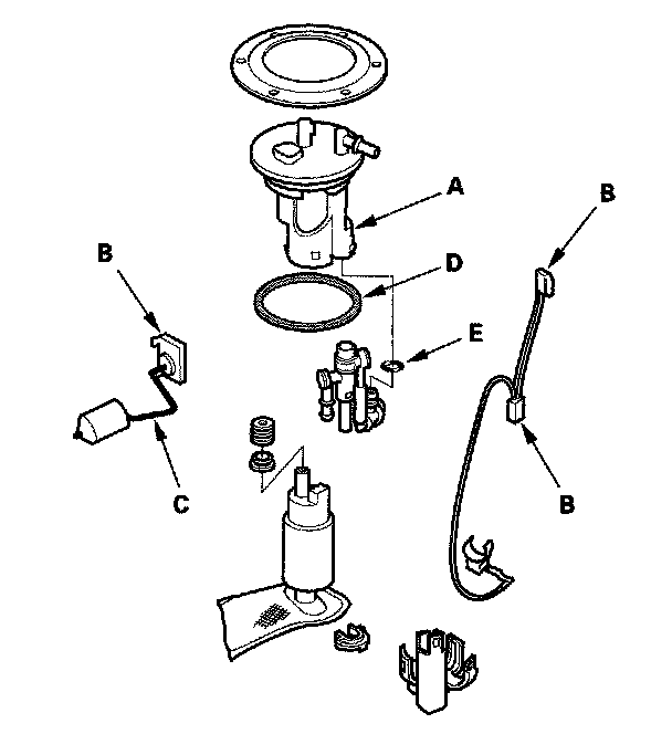 - When installing the fuel gauge sending unit (C), make sure the connection is secure and the connector is firmly locked into place. Be careful not to bend or twist it excessively.