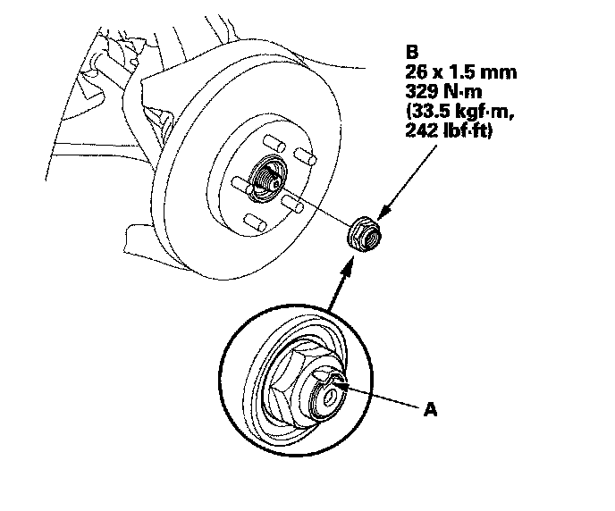 - Before installing the spindle nut, apply a small amount of engine oil to the seating surface of the nut. After tightening, use a drift to stake the spindle nut shoulder against the driveshaft.