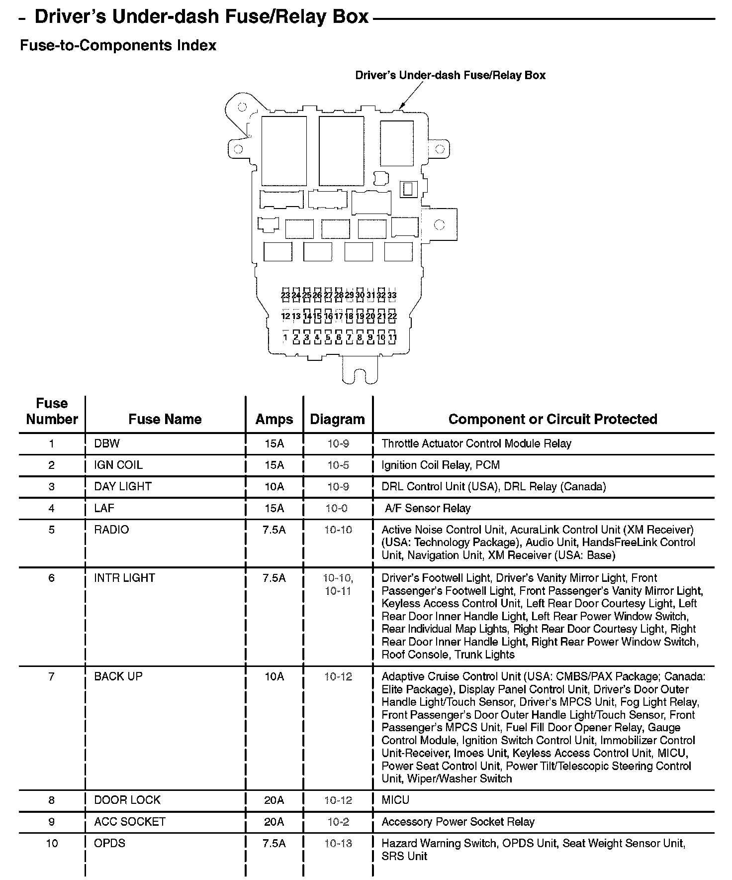 Driver's Under-dash Fuse/Relay Box (Part 1):