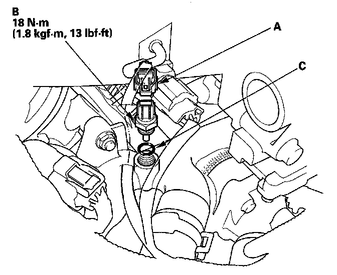 4. Remove ECT sensor 1 (B).