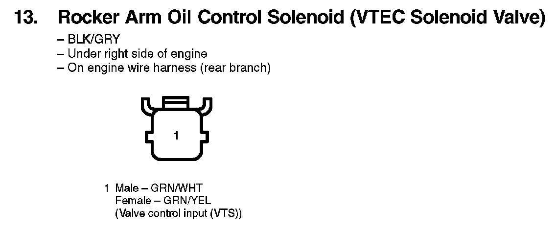 13. Rocker Arm Oil Control Solenoid (VTEC Solenoid Valve):
