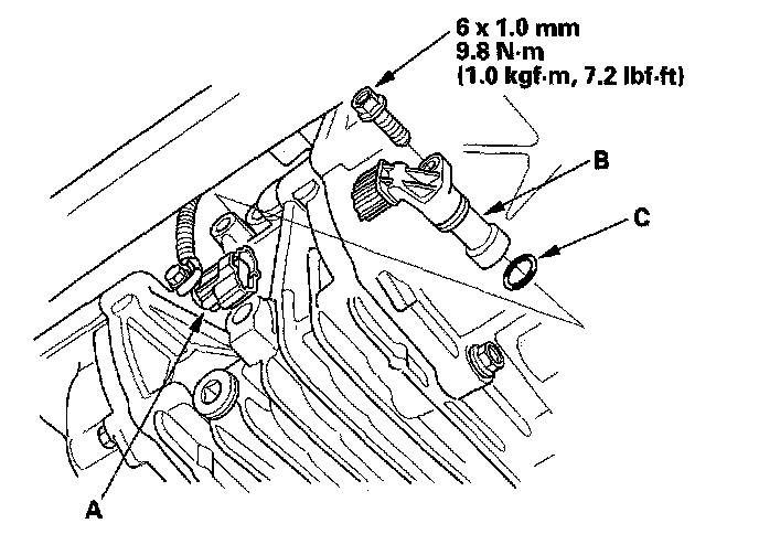3. Install the hypoid gear speed sensor with a new O-ring (C) in the reverse order of removal.