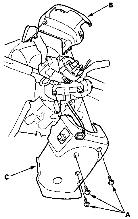 7. Remove the column cover screws (A), then remove the column covers (B, C).