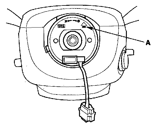 6. If necessary, center the cable reel. (New replacement cable reels come centered.) Do this by first rotating the cable reel clockwise until it stops. Then rotate it counterclockwise (three full turns) until the arrow mark (A) on the cable reel label points straight up.