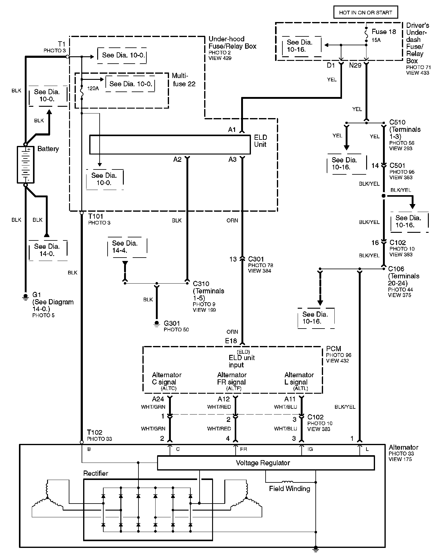 Connector Views: Connector terminal views (references to VIEWS) referred to within these diagrams can be found at Connector Views by View Number. Connector Views By View Number