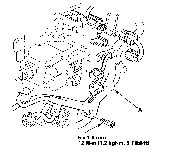 14. Remove the bolt securing the harness cover (A).