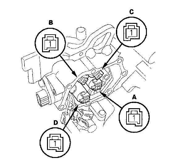 3. Check that shift solenoid valves A, B, C, and D operate with the HDS. A clicking sound should be heard.