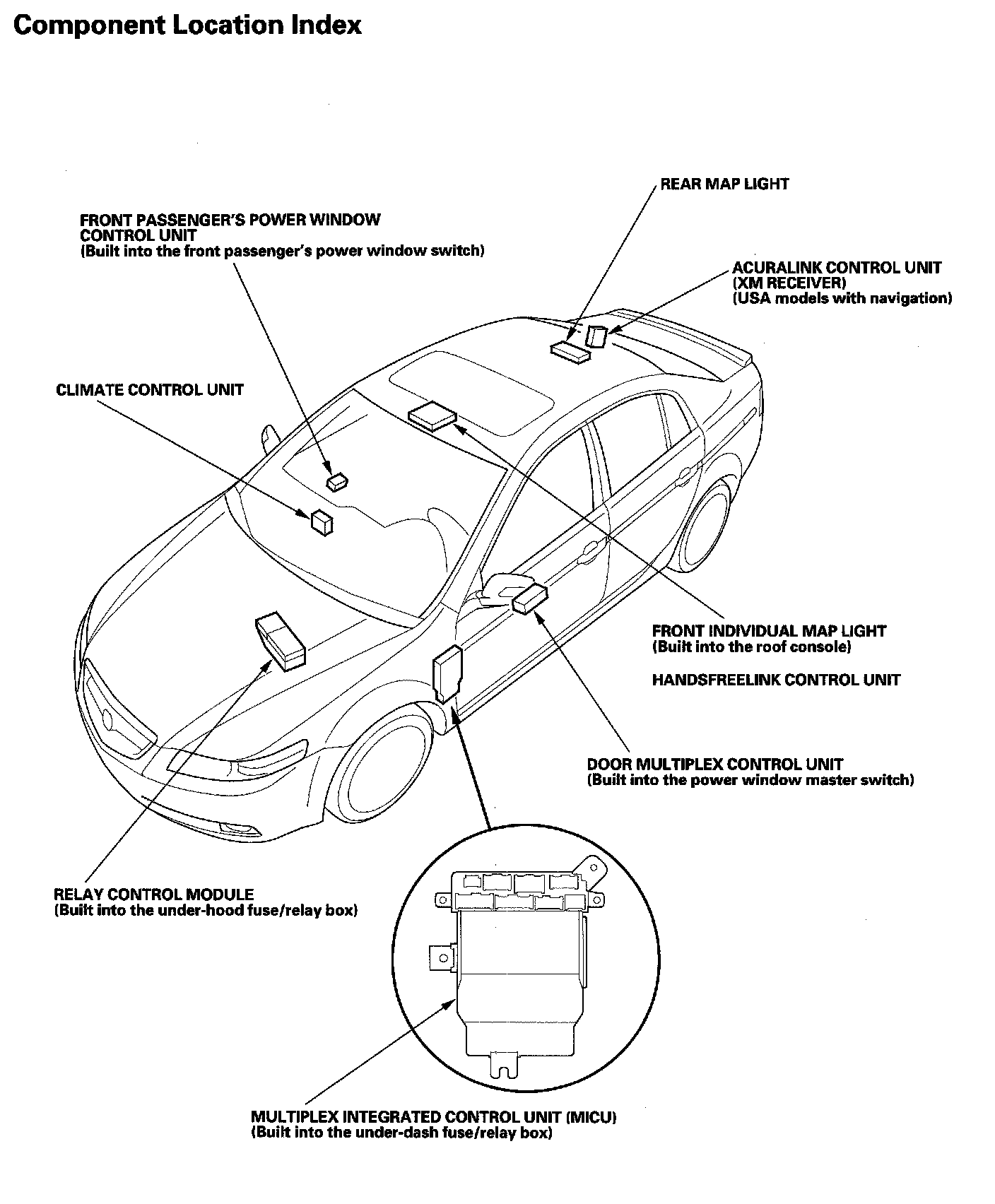 Multiplex Integrated Control System Component Location Index: