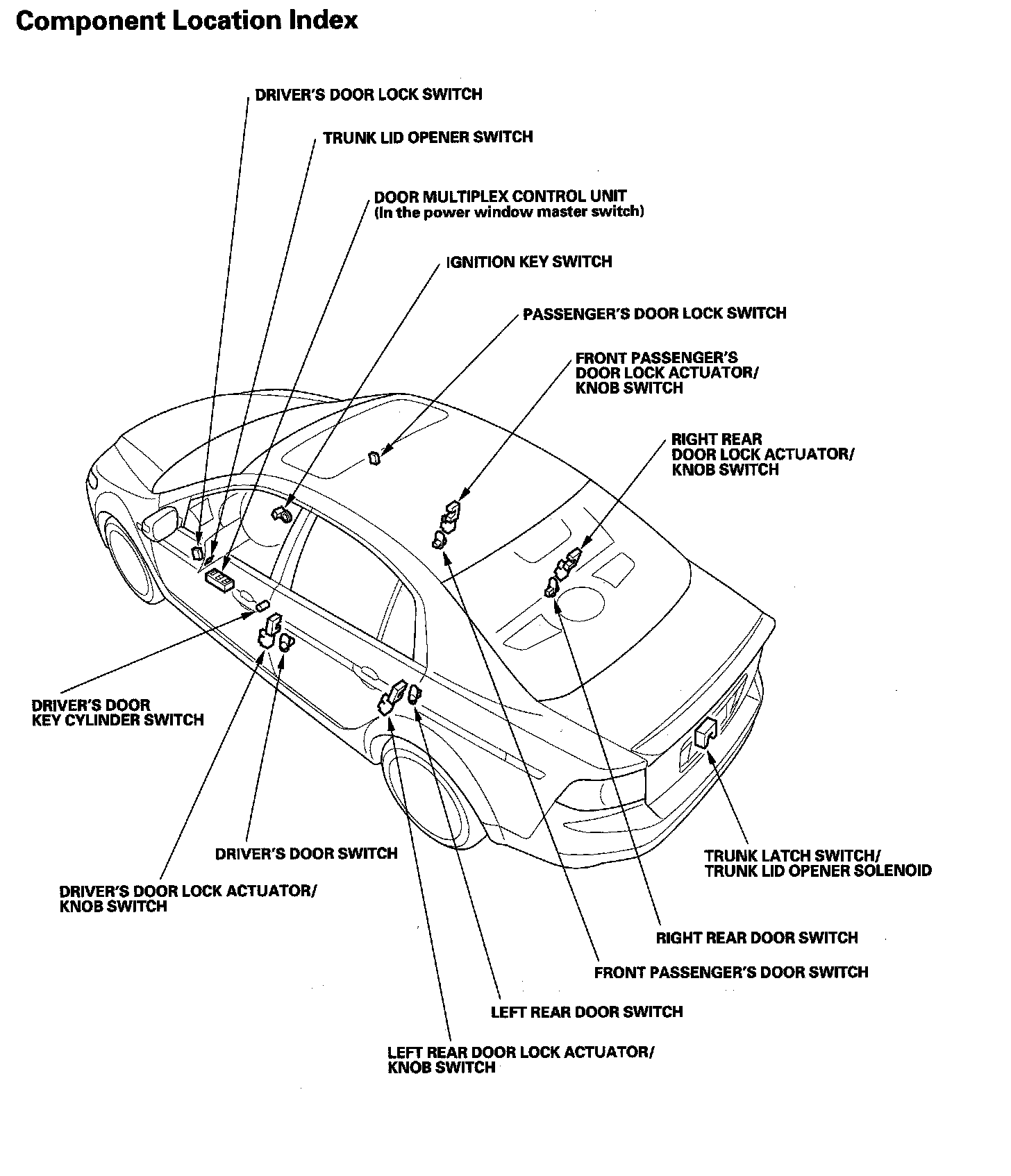 Keyless/Power Door Locks/Security System Component Location Index: