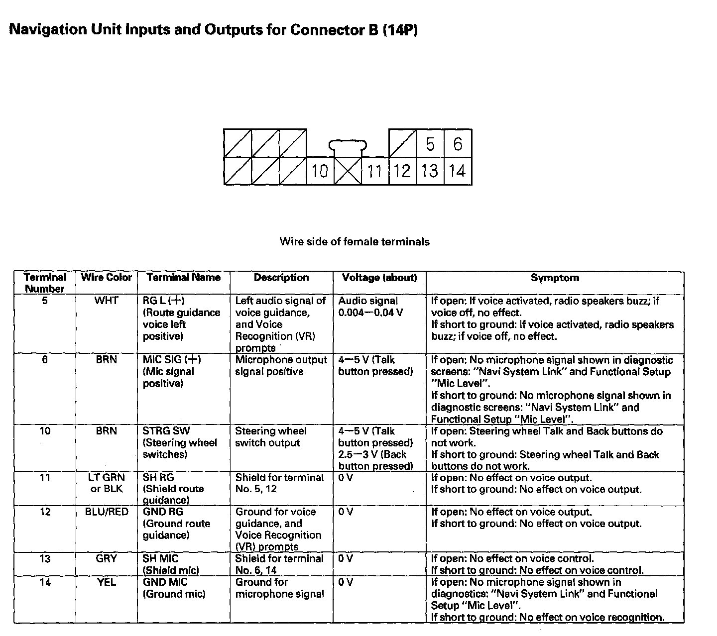 Navigation Unit Inputs And Outputs For Connector B (14P):