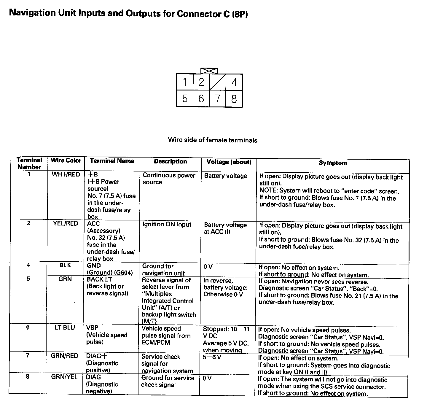 Navigation Unit Inputs And Outputs For Connector C (8P):