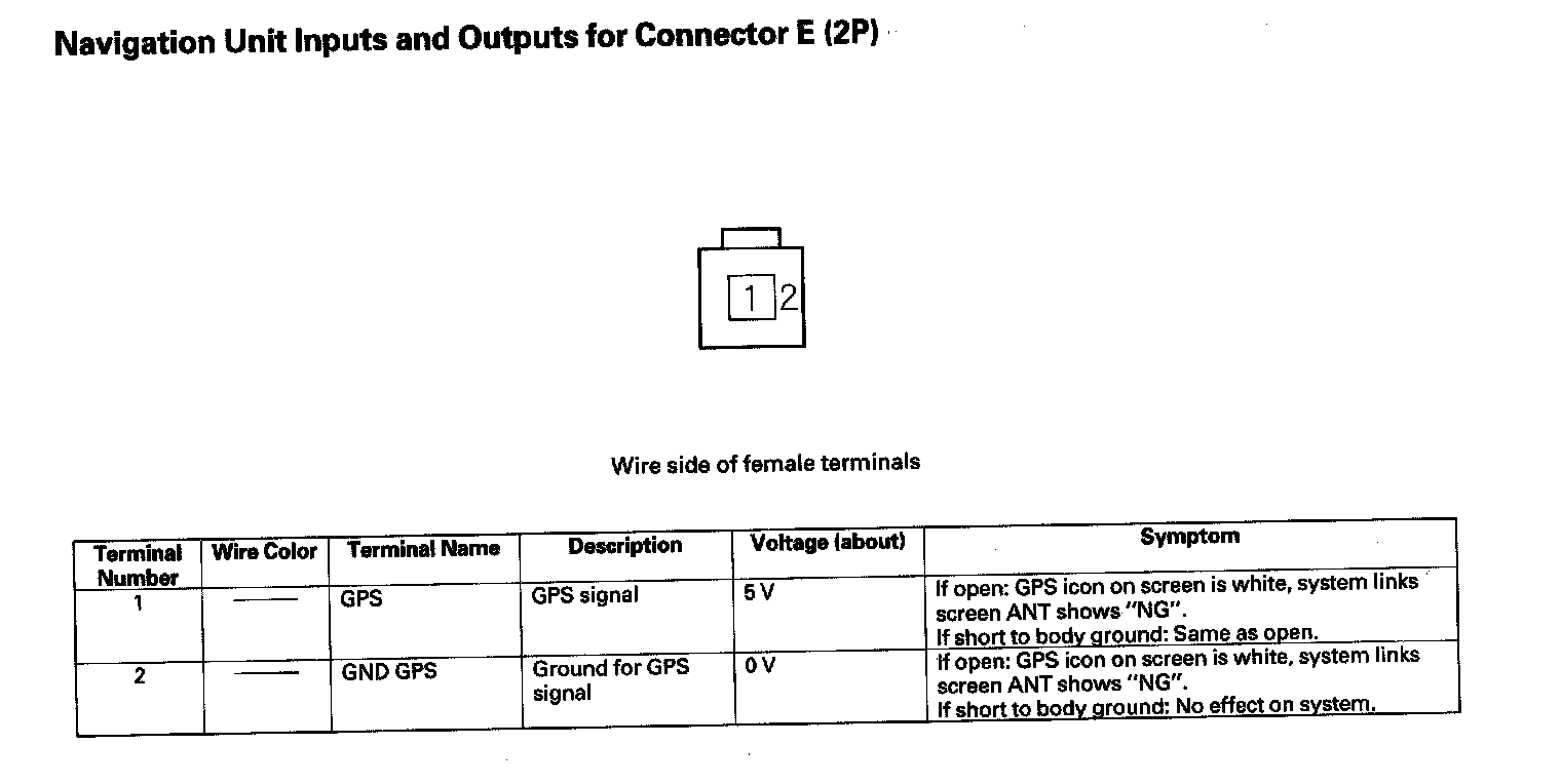 Navigation Unit Inputs And Outputs For Connector E (2P):